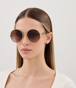 Oversize Round Chloe Script Sunglasses- Gold/Brown