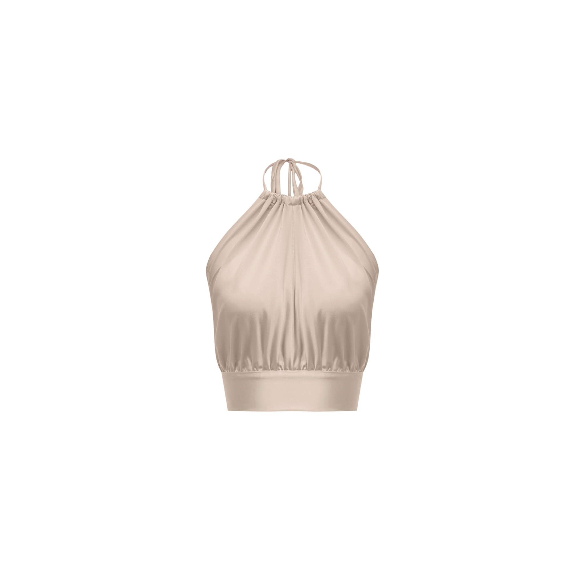 Explore versatility with the Bardot Top in Silk Charmeuse. Featuring a halter top design with an attached wrapped belt, offering a customized fit and catering to different body types and style preferences. Express your distinctive style through various tie options, whether it's chic bows or artful knots on the back or front. A timeless addition to your wardrobe, effortlessly transitioning from casual to upscale occasions.