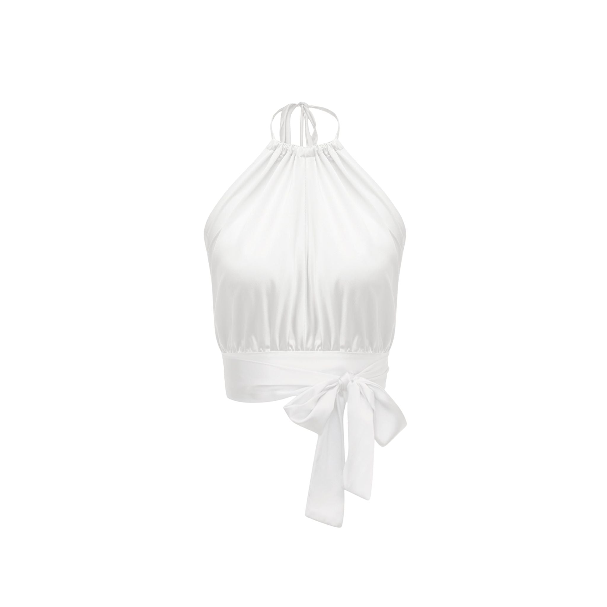 Explore versatility with the Bardot Top in Silk Charmeuse. Featuring a halter top design with an attached wrapped belt, offering a customized fit and catering to different body types and style preferences. Express your distinctive style through various tie options, whether it's chic bows or artful knots on the back or front. A timeless addition to your wardrobe, effortlessly transitioning from casual to upscale occasions.