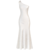 Crafted from luxurious silk charmeuse, the Laura Gown features a sleek, figure-skimming silhouette that flows into a softly flared hem for an elegant finish. Designed with a one-shoulder neckline, it is accented with delicate appliqué and crystal beading at the shoulder for a subtle touch of sparkle. Refined and timeless, this floor-length gown is perfect for formal occasions, bridal moments, or evening events, pairing beautifully with minimal accessories for a sophisticated, polished look.