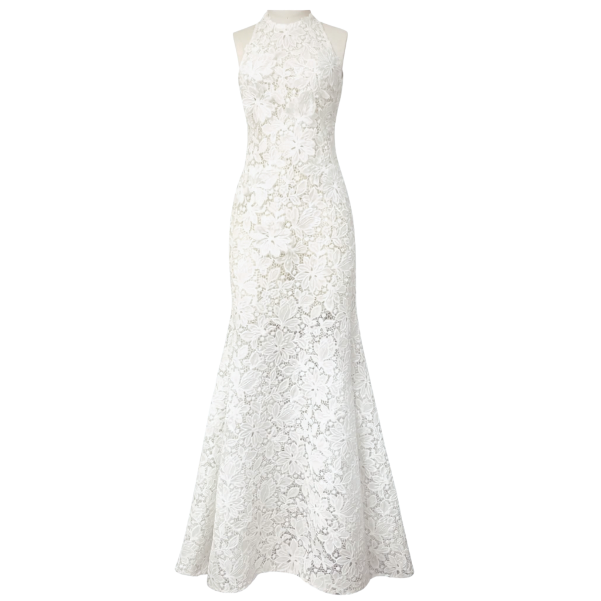 Crafted from intricate ivory lace, the Millie Dress features a sleek, figure-skimming silhouette that flows into a softly flared hem for an elegant finish. Designed with a refined high neckline and allover floral lace, this floor-length dress offers a timeless, feminine look with delicate texture and graceful movement. Perfect for formal occasions, bridal moments, or special events, it pairs beautifully with minimal accessories for a polished, romantic statement.