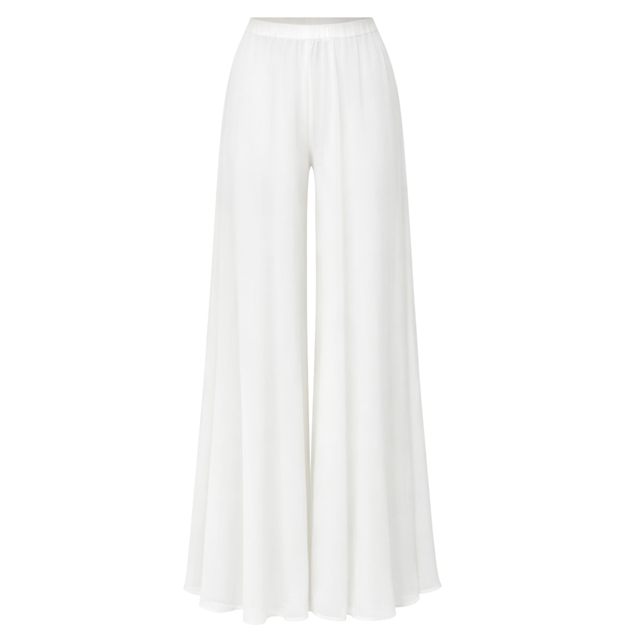 The Palazzo Pant in Ivory is crafted from airy double-layer silk chiffon, creating graceful movement with every step. Designed with a flowing wide-leg silhouette and a comfortable waistband, it offers a soft, elegant drape that flatters and elongates the figure. The lightweight layered construction provides subtle coverage while maintaining a delicate, ethereal feel, making it a versatile piece that transitions effortlessly from refined resort wear to elegant evening dressing.