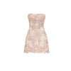Elegant strapless dress featuring delicate floral embroidery throughout. Designed with a fitted bodice and a softly structured skirt for a flattering silhouette. Finished with an embroidered hem for a feminine touch.