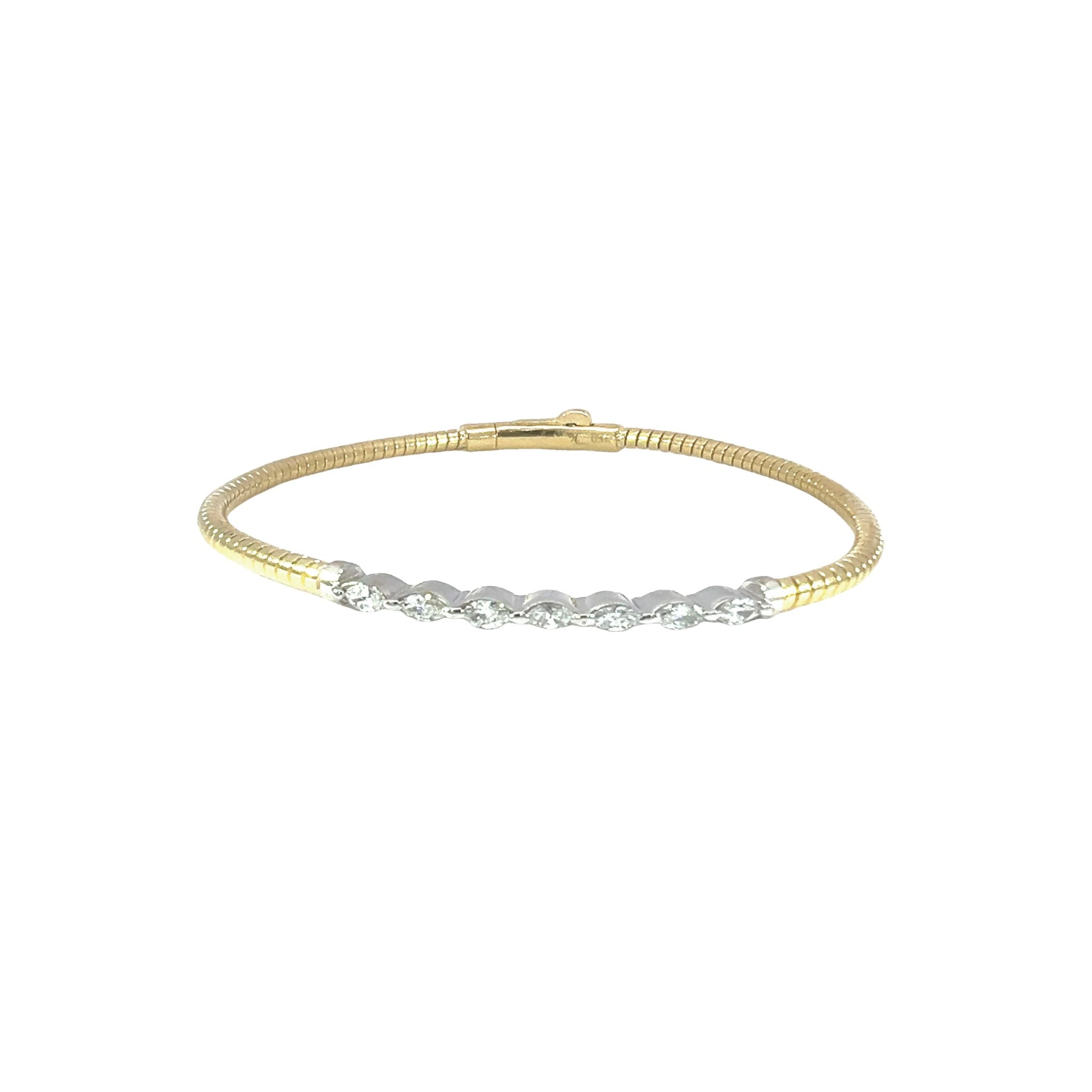 Yellow Gold Stretch Bangle w/ Marquise Diamonds.